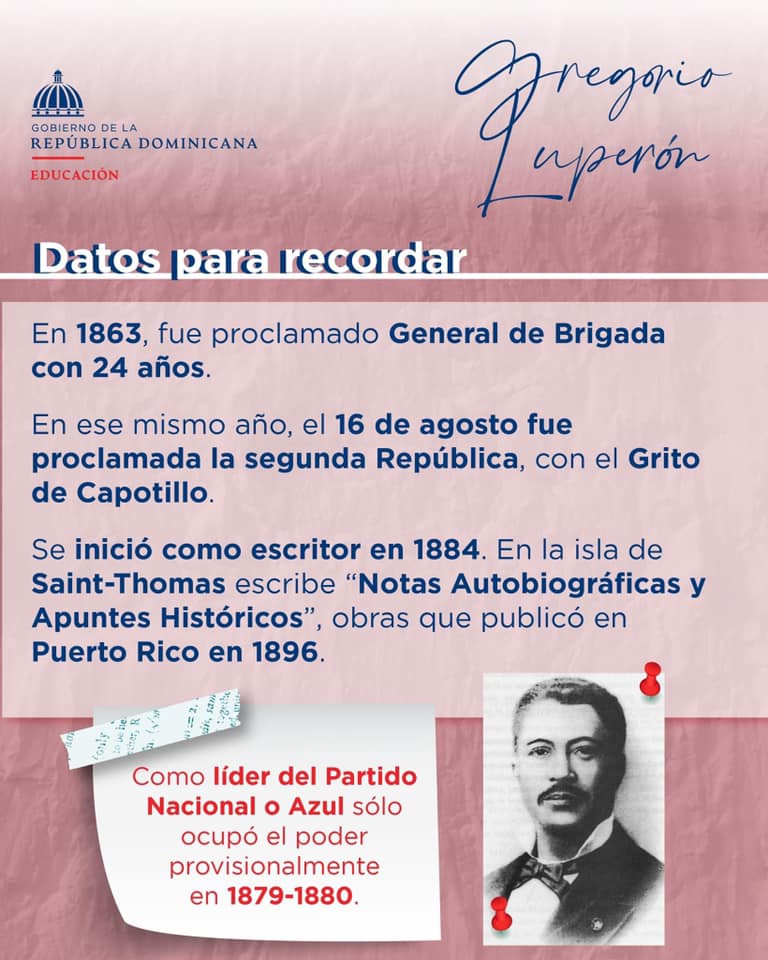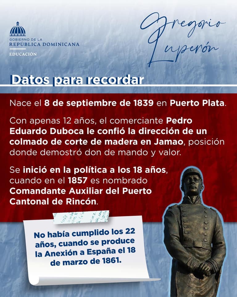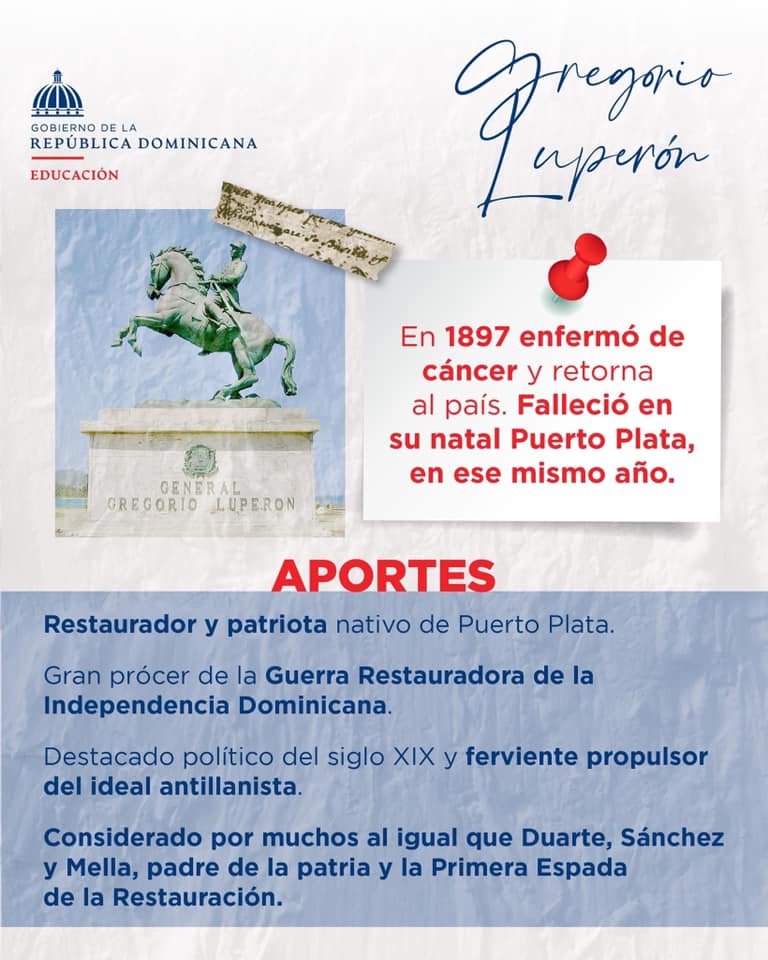 Por ser nuestro gran prócer de la Guerra Restauradora de la Independencia Dominicana y destacado político del siglo XIX, conmemoramos un aniversario más del natalicio de Gregorio Luperón, quien además fue un gran abanderado de la educación, creando escuelas y cátedras de estudios superiores.